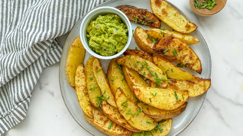 The grilled salt and vinegar potatoes are ready to serve. These potato wedges are great with ketchup or guacamole and also pair well with any protein entrée like the classic burger, grilled chicken, or tuna sandwich.