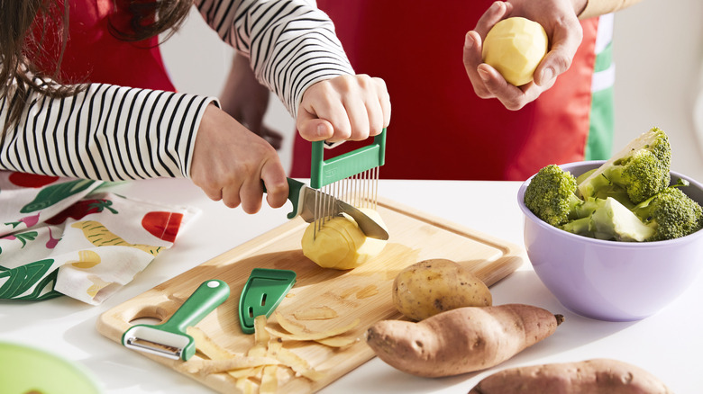 More than offering practical tools, the collection is hoping to draw attention to the prevalence of food waste in America's homes. According to an IKEA press release sent to Tasting Table, Americans waste 160 pounds of food per year. The TABBERAS kitchenware works as both an aide and reminder for people working to reduce food waste in their kitchen. As noted on the company website, designers Anna-Maria Nilsson & Luna Gil said, "Inspired by the food waste movement and sustainable agriculture, we chose to make true-to-nature, yet playful, illustrations of vegetables in vibrant colors that can brighten up any kitchen."