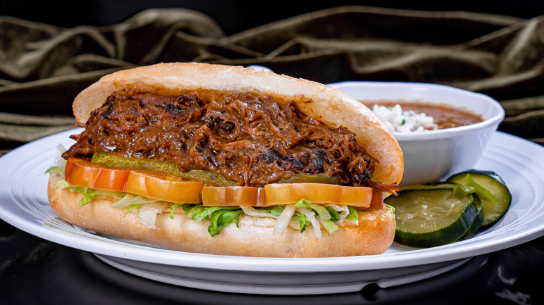 This substantial plate offers the complete package. Let's start with the sandwich of billing which comes fully "dressed" with lettuce, and tomatoes, and mayo. But of course, it's all about the beef, and the slow-cooked shreds are juicy and tender, ending up a couple of stops short of Mushville. The meat is drenched in a savory sauce which, according to State, is prepared with the same roux used in the house gumbo. A soft yet sturdy roll delivered straight from the Pelican State successfully anchors the hearty sandwich.