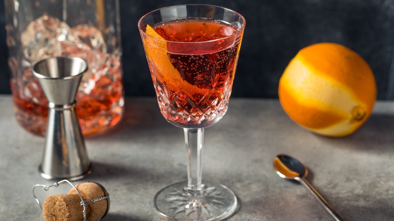 Flay's favorite is easy to make; no fancy shakers or a long list of ingredients — just Campari, sweet vermouth, and sparkling wine. No special glassware is required, as the drink is most at home in a common stemmed or rocks glass. The spirits should be used in equal proportions for flavor balance, so no complicated measuring tools are required either, just pour one part of each in your chilled glass. Of course, don't hesitate to increase the proportion of sparkling wine if you like a lighter-flavored drink with more bubbles. We have to agree with Bobby here, the negroni sbagliato is a classic we can't stop sipping!