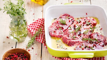 Food safety should always be a top priority when marinating. We've already discussed storing your meat in a container that won't leak or react with acid. Leak prevention has another facet: keeping your meat juices from contacting other food in your refrigerator, which can cause cross-contamination. Cross-contamination occurs when bacteria from one food, often unintentionally, spread to another food, according to the USDA. Another way to prevent cross-contamination is to store your raw meats below any cooked foods or those intended for eating raw, like vegetables you might use in a salad.
