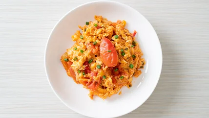 While you may not see it on the menu at a Chinese restaurant, tomato and egg stir-fry is a common household dinner dish in China that dates back to the 1940s. It's a comforting fusion of Western and Eastern cuisines; tomatoes originated in Mexico but are prominent fixtures throughout the Americas and Europe, while eggs have long been a central part of Chinese cuisine.