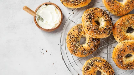 Making homemade bagels is an undertaking. From mixing up the bagel dough, waiting for the yeast to rise, and molding it into the familiar bagel shape, to boiling, topping, and baking, it's not quick and just not something you decide to do on a whim. Some experts even recommend using a baking stone. Bagel-making takes planning and careful consideration. That is unless you have some plain yogurt and an air fryer. Then it's almost as easy as a trip to the bagel shop — no yeast, no boil, no bake, no fuss.