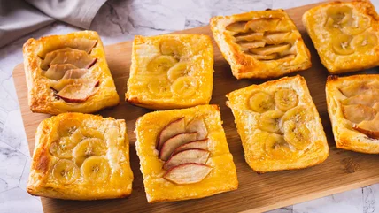 This hack is great for both sweet and savory, but if you're like most people, you probably want to try some sweet options first. For one of the most basic iterations, all you need is a drizzle of honey, some thinly sliced pear, and puff pastry.