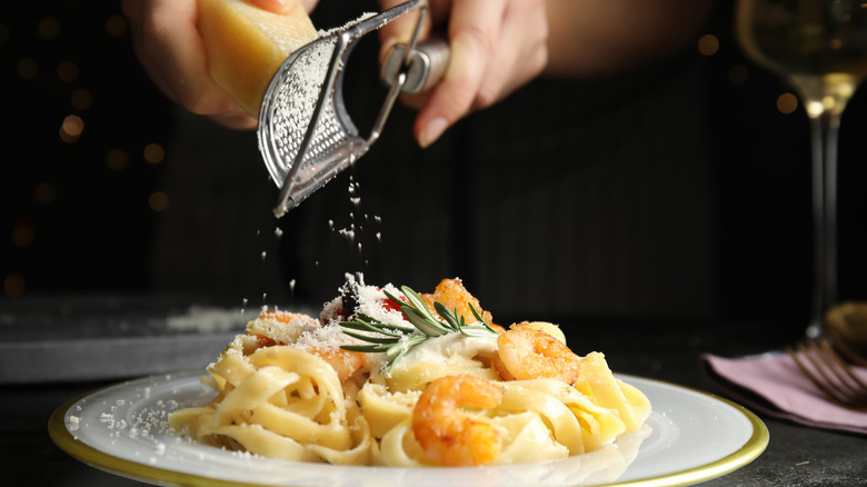 Do you love letting that waiter go to town on the "I keep grating this cheese until you say stop" schtick? We do, too. The taste of the sharp Parmesan on top of that warm, savory sauce creates the perfect cheese pull that adds a whole other dimension to your dish. And even if you're at a spot that keeps the Parmesan on the table in a shaker, it still needs to go on top of your pasta dish — it wouldn't feel complete without it. It's the metaphorical cherry on top. But we'd advise you to pass on the Parmesan for seafood pasta dishes specifically.