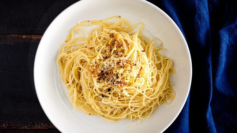 Angel hair pasta is one of our absolute favorite types of pasta, so this tip pains us to tell you about it. We think angel hair pasta should, in general, be even more popular than its rival spaghetti, but we understand why it's not. The reason it's probably not as popular is the same reason you may want to avoid ordering it at an Italian restaurant: It can easily become mushy after being cooked. It's called angel hair for a reason, and that's because it's so delicate.