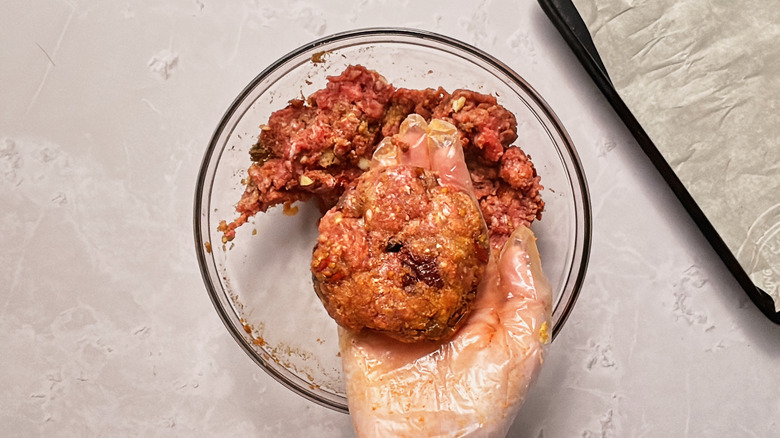 - Using your hands, combine the beef, chipotle chiles, onion powder, cumin, garlic, egg, breadcrumbs, and ¼ teaspoon salt until well combined. Do not overmix.
