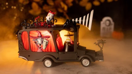 The 2023 Halloween popcorn bucket at Disney comes from the ever-popular "The Nightmare Before Christmas" and is based on the Mayor's car from the movie. The black-and-orange gothic truck features pumpkin headlights, the mayor sitting up front, and characters like Shock and Scary Teddy peeking from the windows. A hatch in the top opens up to reveal the interior container, which holds the popcorn. The "Nightmare Before Christmas" bucket is available at multiple vendors in Disneyland and California Adventure, including at the Haunted Castle and during Mickey's Halloween Party events at Disney World. Disney fan blogs and accounts on social media are already helping the bucket go viral, and it looks like it will be a hot commodity all season long.