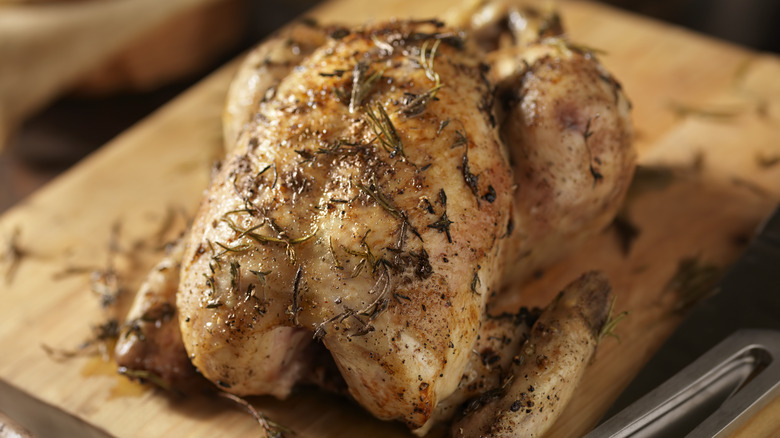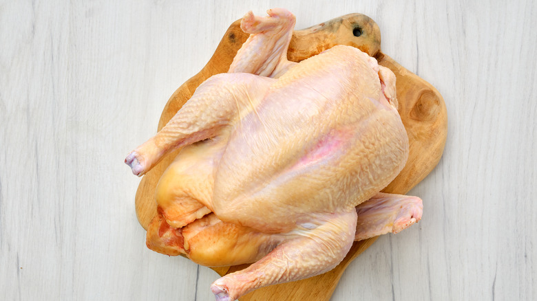 The options for buying a whole chicken can be a bit daunting. Ina Garten suggests you should always choose the smallest chicken because they roast easier than larger birds. She recommends home cooks keep their birds under five pounds for a better flavor. Garten also suggests buying several smaller chickens rather than one massive one if you're cooking for a crowd. There is some science behind choosing the smaller chicken. Older, larger birds have more muscle development, which can make the meat tougher. The selective breeding of large chicken species that reach maturity fast also creates a less flavorful bird that doesn't have the same texture as a smaller one.