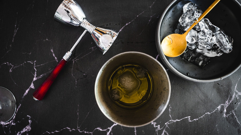 To make a delicious pickle martini, it's important to mix the ingredients properly. Fill a shaker with ice and add the dill pickle juice, vodka, and white vermouth. The ice will help to chill the ingredients and dilute the drink slightly (but not too much so it loses its sharpness), which will help to balance the flavors.