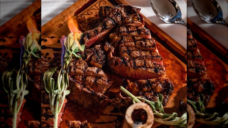 Home to more than 12 million cattle (via Texas Agriculture), Texas is the largest beef producer in the United States. According to the Texas Historical Commission, more than 130 million acres of land are dedicated to farms and ranches for cow production. It comes as no surprise, then, that the Lone Star State is known for not only its brisket barbecue but also its delicious, mouthwatering steak.