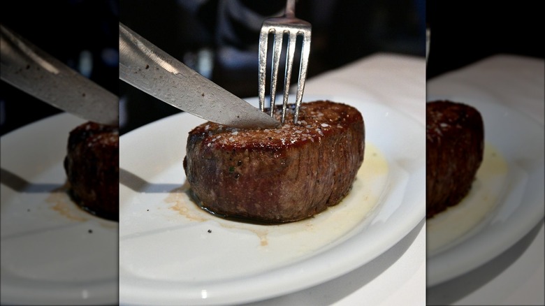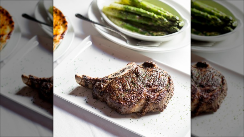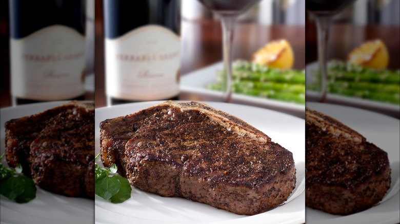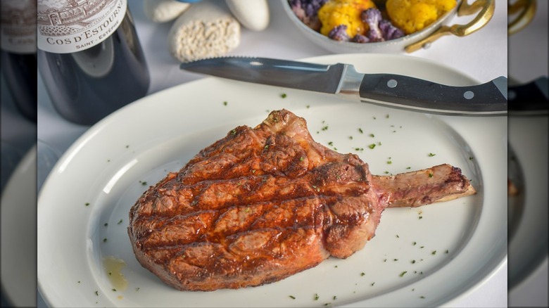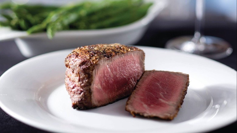 Although Eddie V's Prime Seafood specializes mostly in ocean-based fare, it deserves an honorable mention since patrons have a lot of good things to say about its beef. The establishment uses USDA Prime meat hand-cut and aged for a minimum of 28 days to draw out the flavor — and the taste attests to that. The filet mignon is a fan favorite and is best paired with a side of truffled macaroni and cheese. Like The Capital Grille, the eatery has multiple locations, and despite each of the chain's restaurants being unique, the quality of the steak is consistent.