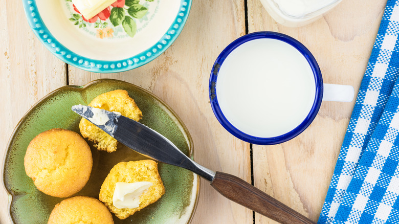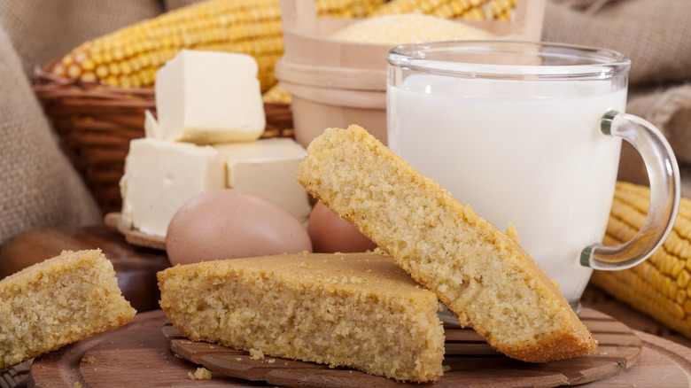 Cornbread's origins in America can be traced back to Native American cuisine. After Native Americans began grinding corn into cornmeal, European settlers arrived and began using the ingredient in their own recipes, leading to the birth of the cornbread we know today. Sometime after that, although no one knows exactly when or where, milk — traditionally buttermilk — was added to the dish, resulting in a spoonable, comforting dish that's often enjoyed as a snack or simple dessert.