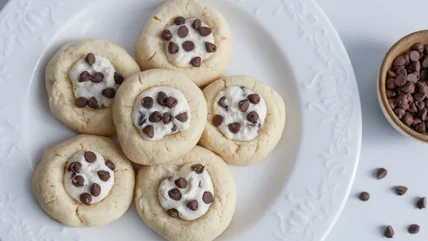 If you love cannolis, why not put their ricotta and chocolate flavors into adorable thumbprint cookies?