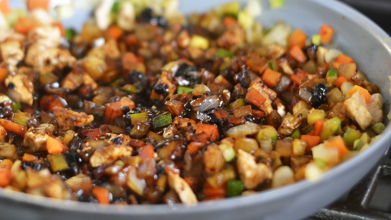 The chunjang, too, needs a bit of prepping before you can use it. Mix it with the oil, then stir-fry it over medium heat for 3 minutes. Hoffman explains, "Cooking the chunjang will help reduce the bitterness of the black bean paste."
