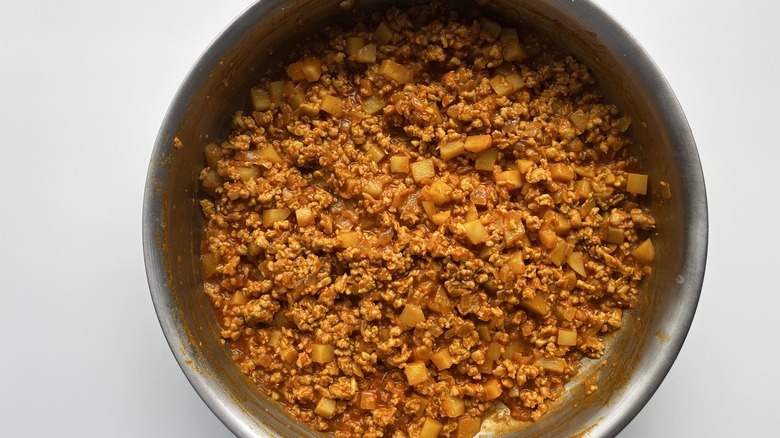 The filling for these curry puffs is made with ground chicken, an onion, and a potato and seasoned with garlic, ginger, curry powder, brown sugar, salt, and lime juice. Other ingredients you'll need for cooking include oil, tomato puree, and coconut milk. Le Moing notes that even though you won't be using the whole cans of those last two ingredients, the leftovers can easily be repurposed. "Save leftover coconut milk for adding to coffee, tea, smoothies, oatmeal, or cooking rice," she suggests, adding that leftover tomato puree can be used "for making pasta sauce, pizza sauce, tomato soup, or sloppy joes."