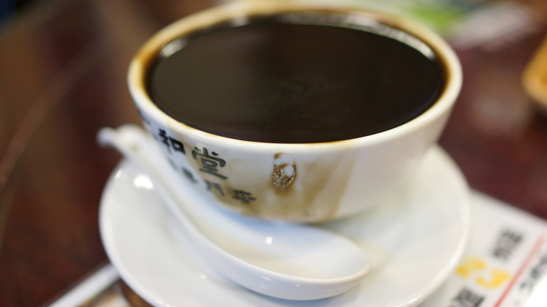 Sitting in a Hong Kong-style cafe, you discover an enigmatic dessert on the menu called guilinggao (龟苓膏) — commonly known as tortoise jelly in China — and you decide to order it. Shiny, jet-black cubes that immediately command your attention arrive in an ornate porcelain bowl. You scoop up a heaping spoonful with a Chinese soup spoon and take a bold bite: The cold jiggling jelly, drizzled with simple syrup, is soft — as expected — and not too sweet, with a noticeably bitter aftertaste. Still, it's pleasant, earthy, and herbal, a little like licorice, and very refreshing.