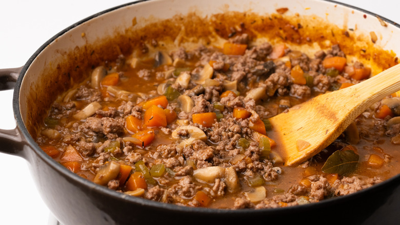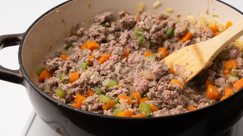 In this take on the English classic, recipe developer Jennine Rye has swapped out the ground beef for ground turkey. It's a great and different way to use this often underutilized meat, making for a leaner meal with just as much flavor. While turkey can end up being quite dry in certain dishes, because of the way the ground meat is stewed in this dish, it keeps it wonderfully juicy and tender.