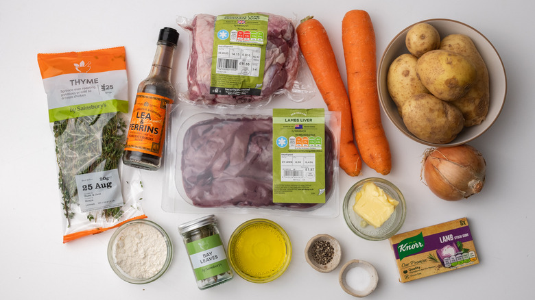 To begin this recipe for hearty Lancashire hotpot, you will need to gather the ingredients. First, you want to source the lamb. There are a couple of lamb cuts you can choose for this recipe. Shoulder, thigh, or neck will all work nicely — just make sure the meat is nice and fatty with plenty of connective tissue. Thanks to the stewing process, these will add flavor and tenderness to the dish. To increase the rich, gamey flavor of the hotpot, you will also want lamb liver (or kidneys if you prefer).