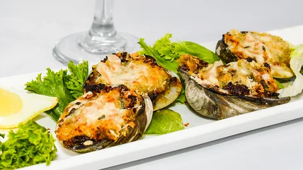 Clams casino are said to be the invention one Jules Kenner of the Narragansett Bay Casino in Rhode Island. Not to be confused with the far larger "stuffies" — Rhode Island slang for large stuffed clam — clams casino are made with bite-sized littleneck clams. A classic of the New England coast, clams casino, when done correctly, have a flavor that is at once briny, sweet, and savory, with a chewy and crunchy texture. It is a wonderfully complex mouthful.