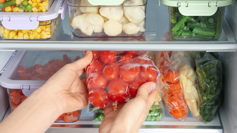 We all know that freezing food can save us time and money, but did you know it's also the secret to more flavorful gazpacho? It all comes down to water content. Vegetables high in water content — like the cucumbers, tomatoes, onions, and bell peppers used in gazpacho — aren't prime candidates for freezing because they turn mushy when thawed. However, this soft, pulpy consistency is precisely what you want when making gazpacho. As the frozen vegetables are puréed in the blender, they will give your soup a luxuriously smooth texture.