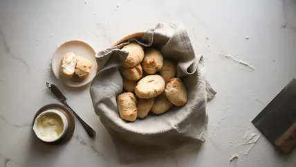 Line a rimmed baking sheet with parchment paper. Depending on the amount of rolls you cut, you may need two trays. Transfer the cut rolls to the tray and cover with a kitchen towel. Let rise for another hour or so until the rolls are light and have enlarged. Place the tray in the oven and bake until the rolls are golden brown and firm to the touch, about 15 minutes. Let cool slightly before eating. While pandesal can be eaten plain or smeared with butter, there are so many other ways to enjoy this delicious bread.