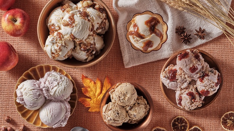 Though it is decidedly still summer, fall looms on the horizon, a flannel and denim cloud perfumed with pumpkin spice. While some will mourn the passing warmth and unfettered looseness of summer, others embrace the hygge of fall in décor, fashion, and flavors. Salt & Straw sure has. In a press release sent to Tasting Table, the gourmet ice cream maker has announced their upcoming seasonal ice cream series, a lineup redolent of all of the comforting ingredients and tastes that may make you want to jump in a pile of leaves.