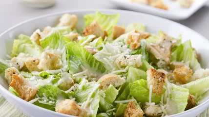 A satisfying crunch is one of the quintessential elements of a good Caesar salad. As long as you achieve the right texture, you can also experiment with different colors, like vibrant, violet radicchio, or red leaf lettuce. Try a milder option like green leaf lettuce, or add a kick of flavor with escarole. Or, for a delightful twist on the classic Caesar salad, try raw broccoli slaw to recreate a gorgeous green and crave-able crunch.