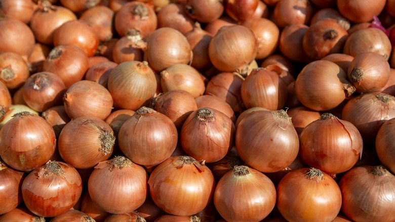It's hard to go wrong with hash browns, which are essentially fried shredded potatoes. But there are many ways to make them even better, and Gordon Ramsay, for one, suggests making hash browns by grating some onion along with the potatoes. Just make sure you don't skip the step that gets rid of much of the moisture, as any mixture containing onion is going to be a bit wetter than potato alone. To that end, salt your grated mixture, put it in a strainer, and try to squeeze out as much liquid as you can. Dried ingredients will help yield a crispier result.