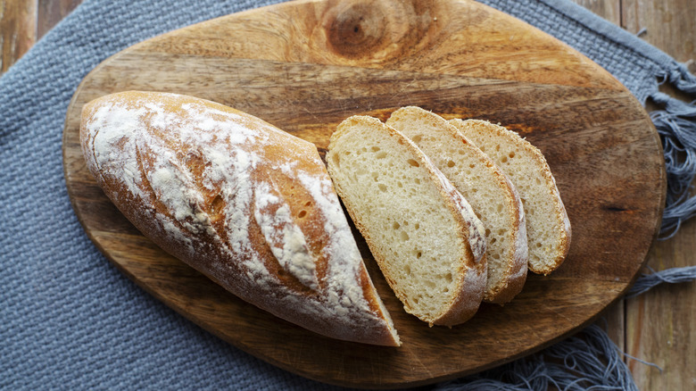 Bread is an important element to have on your charcuterie board because its softness contrasts with the crunchiness of other crackers. The most common bread selections for a board include French baguettes, sourdough, or crunchy artisan ciabatta. Depending on the spreads on your board, you may also consider adding a flavored loaf, like Kalamata olive or raisin bread. Regardless of the type of bread you select, you should always be sure to cut the bread into two or three bite slices for easy eating.