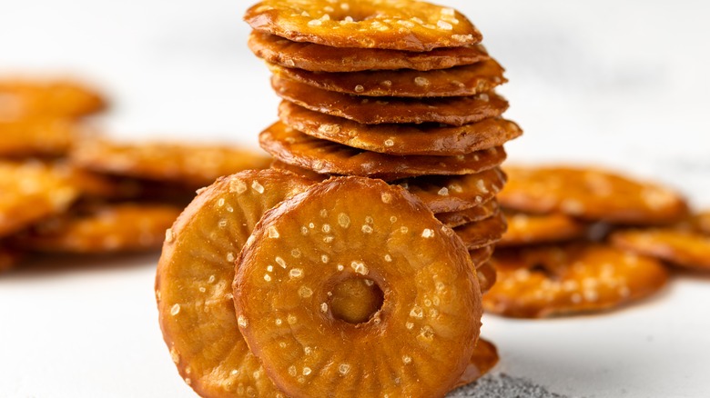 We mean it when we say that pretzel slims (or thins, depending on where you're shopping) are so much better than any other type of pretzel. Not only do you get the perfect crunch that you would from a bag of Snyder's classic twists, but these pretzels are much easier to scoop spreads and toppings with. Plus, you can shop for these pretzels in other flavors besides the classics, such as cinnamon sugar for a sweet dessert charcuterie board or everything seasoned for a savory upgrade.