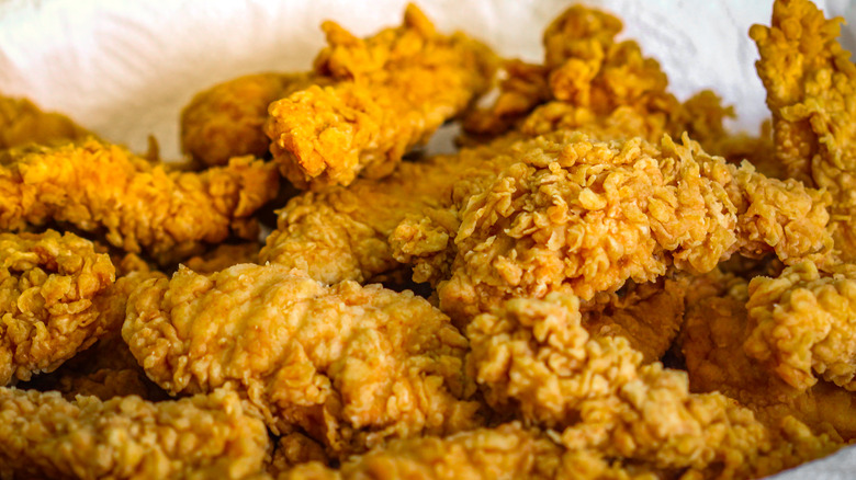 Consumers who have purchased a portion of Banquet brand Chicken Strips Meal at some point this summer may want to check the lot numbers on their boxes. Conagra Brands — the massive food corporation that manages household name brands like Chef Boyardee and Orville Redenbacher's — has issued a major recall of 245,366 pounds of the frozen chicken TV dinner product. According to the FSIS announcement, the Chicken Strips Meals may be contaminated with pieces of plastic. Conagra was notified of the possible contamination after receiving a complaint from a consumer who had sustained a mouth injury from a piece of plastic discovered in the microwaveable TV dinner.