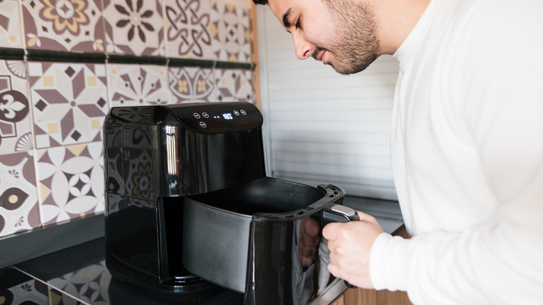 Did you know you can make meatloaf in an air fryer? Just like ice cream, bagels, and poached eggs, you can add your favorite comfort meal to the list of unexpected dishes made easy to cook in this device. While meatloaf is simple to air fry, considering you essentially pop it in the basket and wait until it's ready to eat (with a brief intermission to add glaze), it's also substantially quicker.
