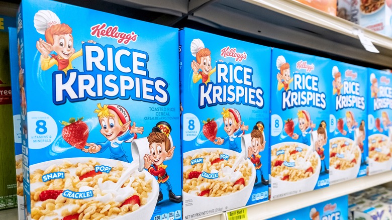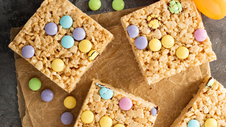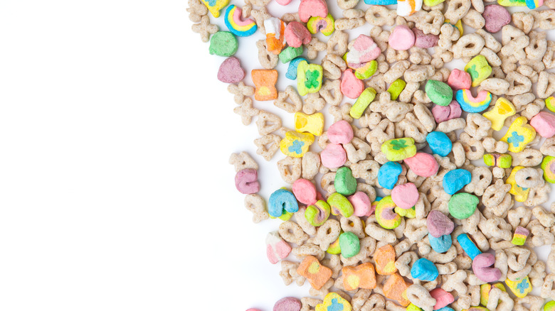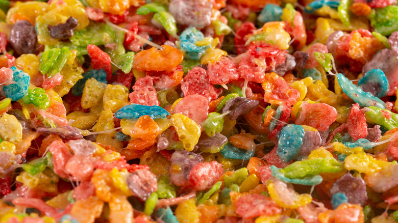 While Rice Krispie treats are a fundamental component of the namesake dessert, you can also switch things up and add different types of cereals to your treat bars. Your Rice Krispie treats will taste even better (and more nostalgic) with the addition of a special marshmallow cereal: Lucky Charms. If you use some of this cereal for your bars, you should expect them to be a little crunchier than the classic recipe. The studded colorful marshmallow pieces may not contribute to the signature gooeyness of the dessert, but it is a bright pop of color that your otherwise monotone bars need.
