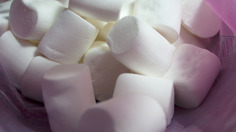 The key to making Rice Krispies treats at home is always using fresh marshmallows — not the questionable, stale bag hanging around in your pantry for who-knows-how-long. If unopened and stored in a cool and dry spot, the puffs can last up to a year. But the shelf life dwindles to just a few weeks when the bag is opened. This is because the outside of the marshmallow gets hard and crusty, so it won't melt down well with the butter.