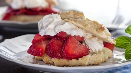To properly mix your shortcake dough, first use a pastry cutter, or if you're short on specialty baking supplies, two forks, to incorporate the cubed, chilled butter and shortening into your flour. Once you've combined the dry ingredients and chilled fats into a dough that resembles a coarse meal, add the liquids and eggs to bind it all together. Carefully knead the dough to avoid over-mixing and melting the butter with your hands, then fold and flatten the dough to create layers that become flaky when baked. Now, pop them in the oven, and enjoy some terrifically tender, traditional shortcakes!