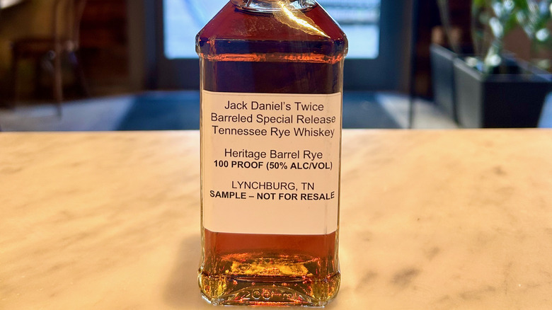 Jack Daniel's Twice Barreled Special Release Heritage Barrel Rye is distinct from other ryes in the brand's collection. Compared to Jack Daniel's Tennessee Rye, which is its standard rye option, you'll notice plenty of differences between the two. Although both bottles contain 70% rye and are charcoal-mellowed, the standard rye comes in at a slightly lower proof (90 as opposed to 100). The brand's standard rye also features a lighter, more golden color.