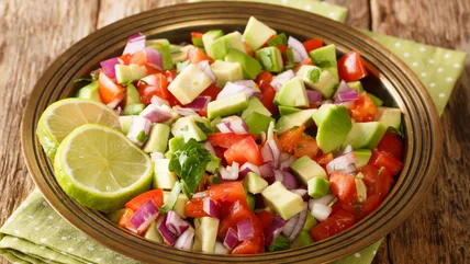 This popular salad produces a bold dose of flavor with only a handful of ingredients. Onions provide crisp, peppers some spice, and tomatoes comprise the base. Plus, a seasoning of citrus juice, salt, or sometimes alcohol is often added to tie it all together, much like with a salsa or an Iranian Shirazi salad.