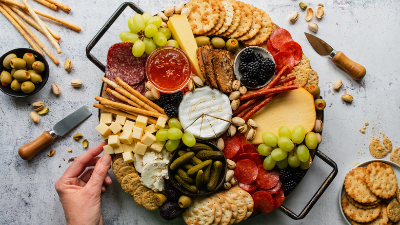 If you want to get back to basics, but with an easy upgrade, then it's time to turn your attention to an often-overlooked element on many boards — the crackers, especially if your go-to is some water crackers and maybe some butter crackers. The meats and cheeses may be the star of most charcuterie boards, but to really let them shine, stock your board with a variety of crackers that complement their flavors and textures. Variety is a key part of a good charcuterie board, and that applies to crackers as well.