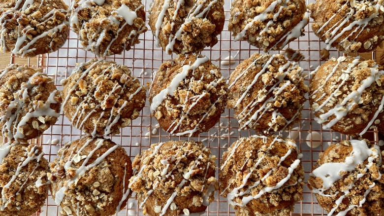 After you pour the glaze over the muffins, your chocolate chip pumpkin spice streusel muffins are ready to eat! "These muffins are the perfect complement to a cup of tea, chai, warm apple cider, or even a cup of coffee — whether for breakfast or a midday pick-me-up," Rosenhouse says.