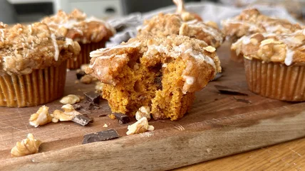 Whether you're in the heart of pumpkin spice season or you're looking for a new muffin recipe, this chocolate chip and pumpkin streusel muffin recipe from pastry chef Katie Rosenhouse should be right up your alley! This recipe combines spice, streusel topping, and chocolate chips into a delicious treat in less than an hour.