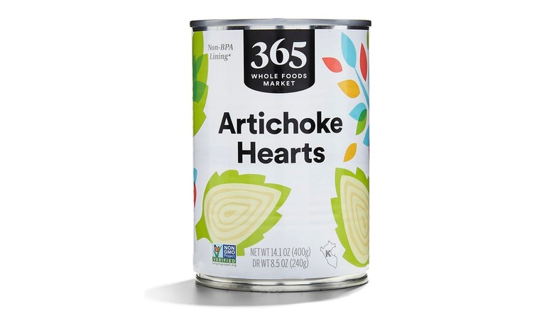Artichokes can be expensive, but the canned artichoke hearts from Whole Foods Market store brand are priced reasonably, especially as compared to the pre-marinated jarred variety. Canned artichoke hearts have some other advantages over marinated varieties because you can marinate them with your own flavor preferences and without all the sugar, preservatives, and heavy oiliness. Drizzle artichoke hearts with olive oil, lemon, and your own spices before adding to salads or antipasto plates.