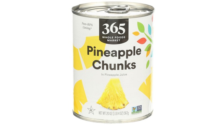 The pineapple chunks come in an easy-open can, so you can tote them in your lunchbox or to picnics, or just keep them around for snacking when fresh fruit isn't available. Keep a few cans on hand for impromptu tropical cocktails. Pineapple is useful in savory dishes, too (and it's up to you whether you want to put it on your pizza). Because the juice is the real thing, reserve it after draining for use in smoothies or for marinating meat or chicken.