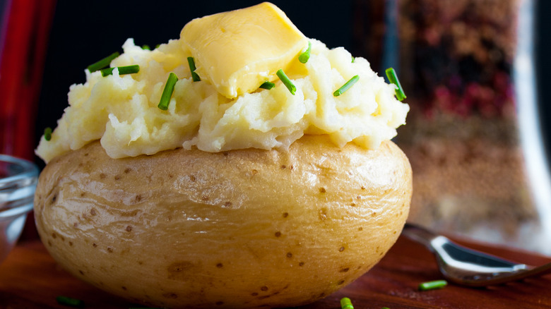 Fluffy jacket potatoes with crispy skin, french fries with steaming hot insides and golden brown exteriors, and creamy mashed potatoes that are light and full of flavor are all best made with baking potatoes. The starch in baking potatoes expands as it heats, which creates the texture we crave. These varieties are usually larger, which means they've had more time to grow and convert more of the potato's natural sugars to starch. Age makes them a bit drier as well, and that helps the starch fluff during cooking. When boiled, baking potatoes can practically dissolve, so take care to not boil mashed potatoes too long!