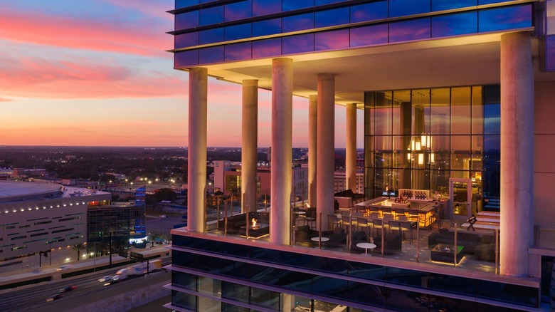 The interior exudes a sleek, ultra-modern charm, establishing the Sky Bar as a sophisticated adult retreat rather than a large, boisterous family gathering venue. While you won't find views of sweeping oceans or swaying palm trees, the skyline of downtown Orlando offers its own brand of allure, especially when bathed in the golden hues of a setting sun.