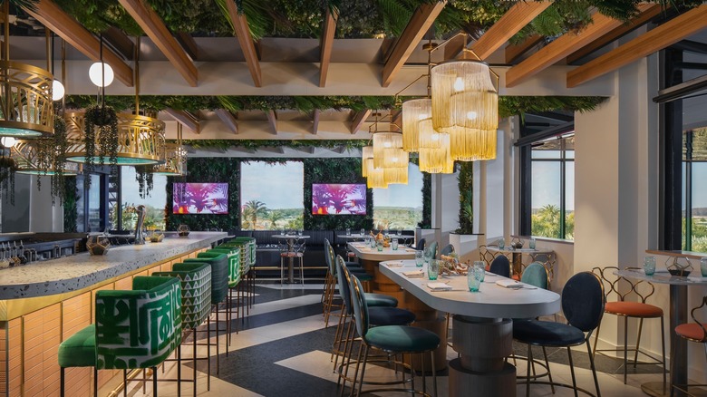 Whether you opt for exterior or interior seating, the boundary between inside and out seems to blur, thanks to expansive windows, sturdy wood beams, and the gentle embrace of surrounding greenery. Like other beautiful Orlando restaurants, you can also catch a fabulous sunset here, even if you won't see any theme park fireworks from here.