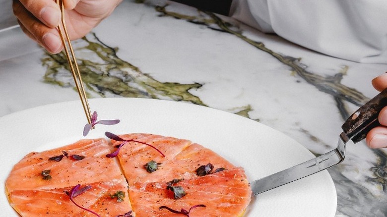 Inside, the restaurant exudes warmth and sophistication. Rich wooden accents, complemented by verdant greenery, create a sanctuary that resonates with natural charm. Further enhancing the ambiance are expansive windows that unveil calming water views, illuminating the dining space with gentle reflections. As you relish the seasonally-inspired dishes, you can also savor in a luxurious moment sipping on a choice wine as you gaze upon the tranquil waters.