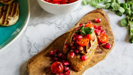 This crostini recipe brings together the sweet tanginess of pomegranates and the savory richness of halloumi cheese in a few short steps.