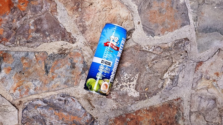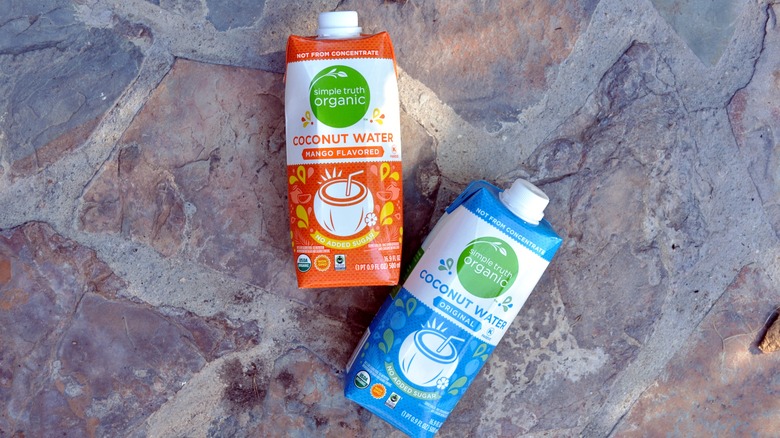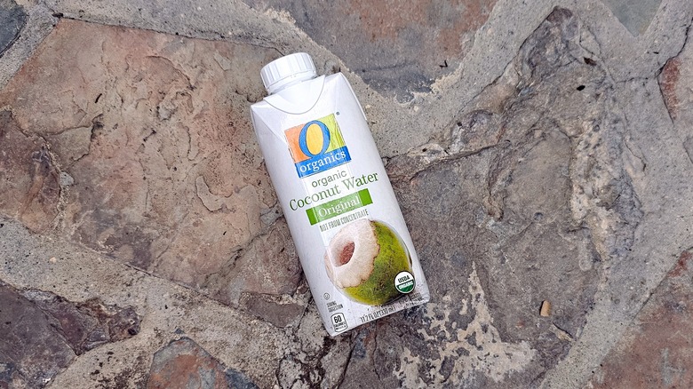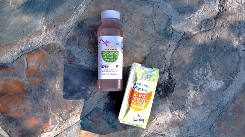 Trader Joe's has a few different options when it comes to coconut water. There's a refrigerated version, as well as two shelf-stable options. After tasting all of them, it's safe to say that the pink refrigerated version is the best one — which is why this one falls squarely in the middle of this list. If Trader Joe's only had refrigerated water, it would be much higher on the list, since that water is a delightful treat full of sweet coconut flavor.