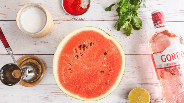 Gather the ingredients for your creamy frozen watermelon cocktail
